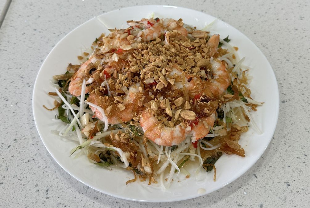 A refreshing salad of shredded green papaya, tender shrimp, herbs, and peanuts tossed in a zesty Vietnamese dressing.